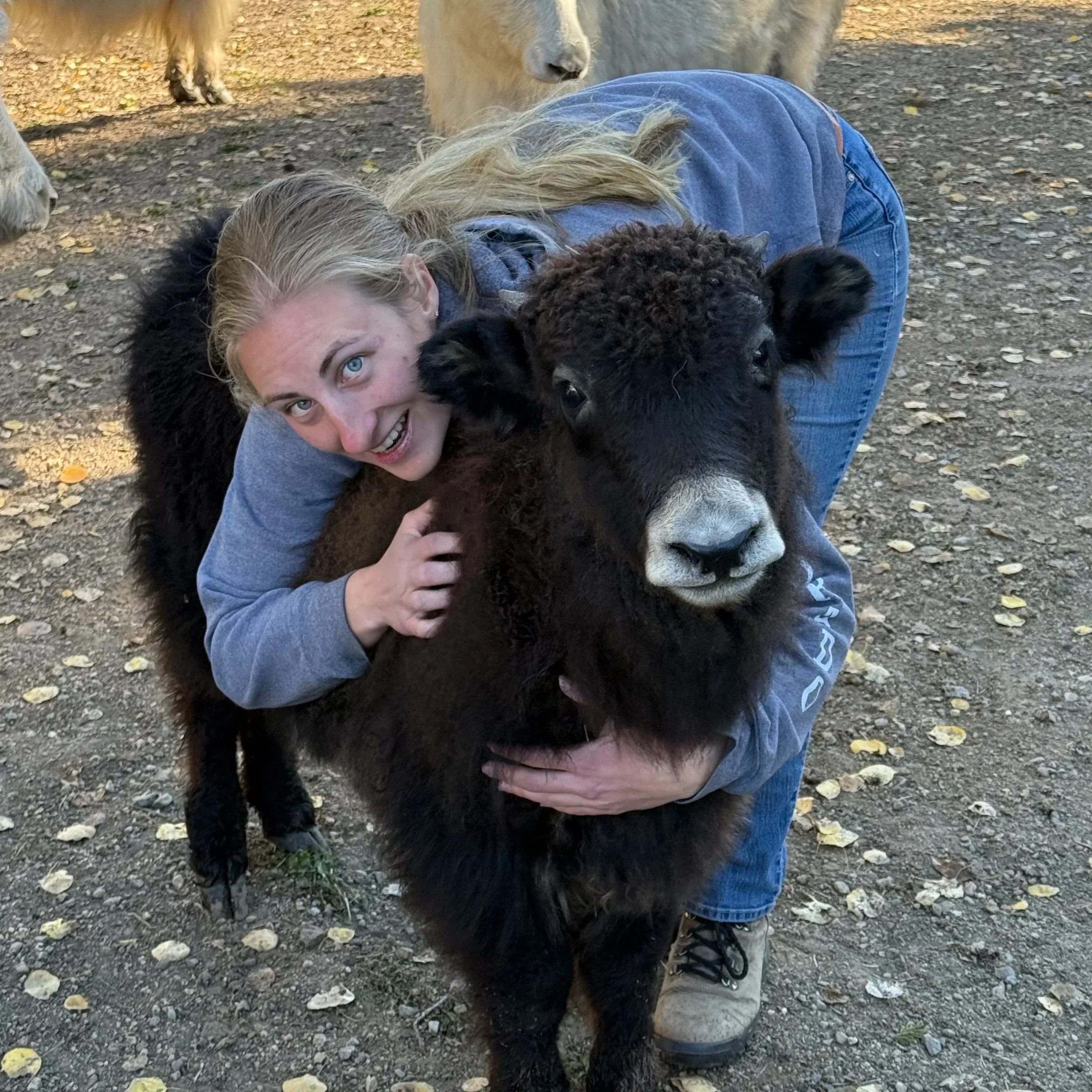 If we were to describe a yak by comparison, we might say they carry the majesty and presence of a bison, the playfulness and sure-footedness of a mountain goat, and the loyalty and devotion of a beloved dog. They climb, they leap, they spin with unexpected quickness and grace. Standing beside an animal so powerful—one capable of lifting you from the ground with a single flick of its horns—creates a natural reverence. And yet they meet us not with aggression, but with gentleness. They lean into touch. They invite connection. And once trust is formed, it runs deep.